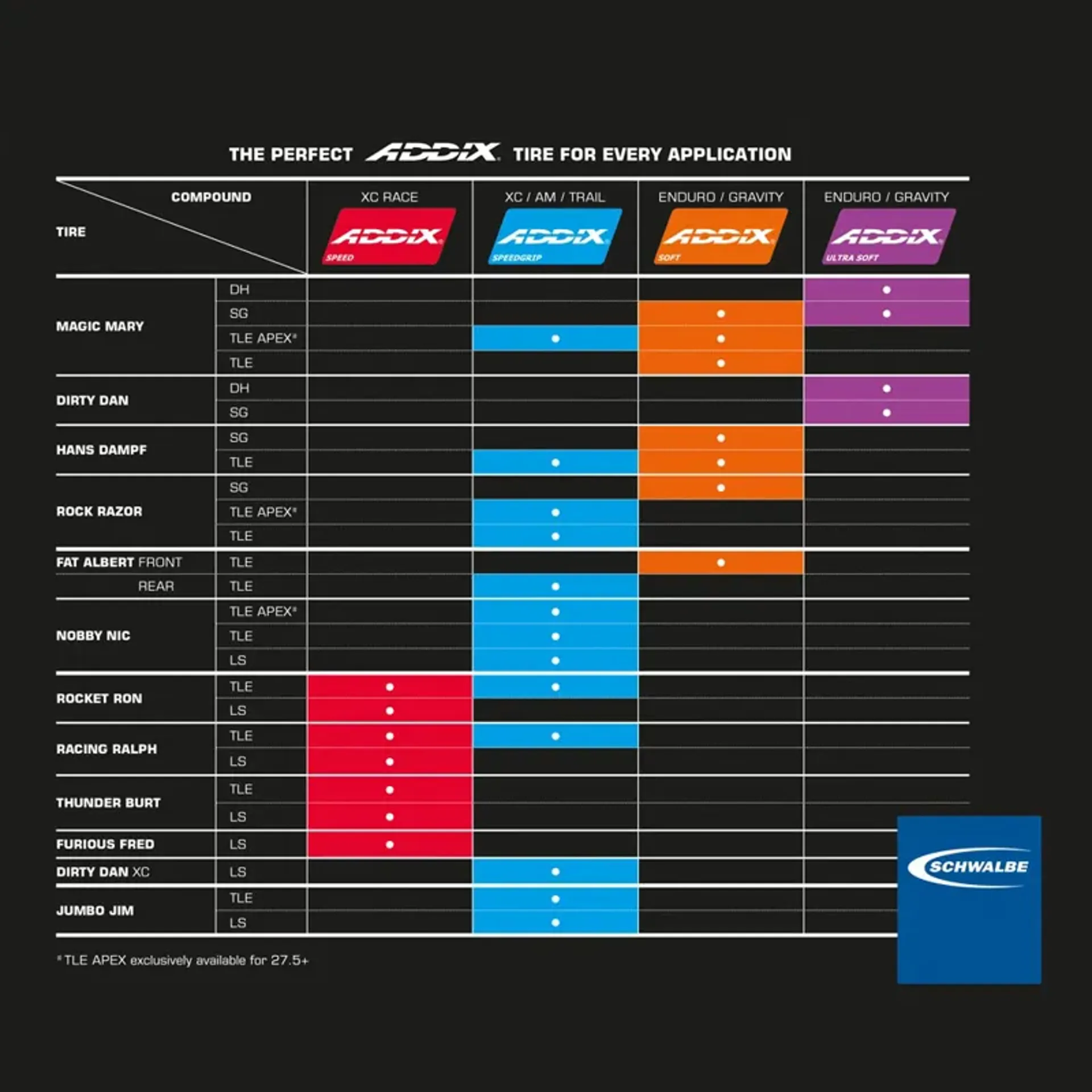 Super gravity version: addix soft (orange) or addix ultra soft (purple). Puncture-proof (with apex) with extreme lateral stability for a dynamic ride.